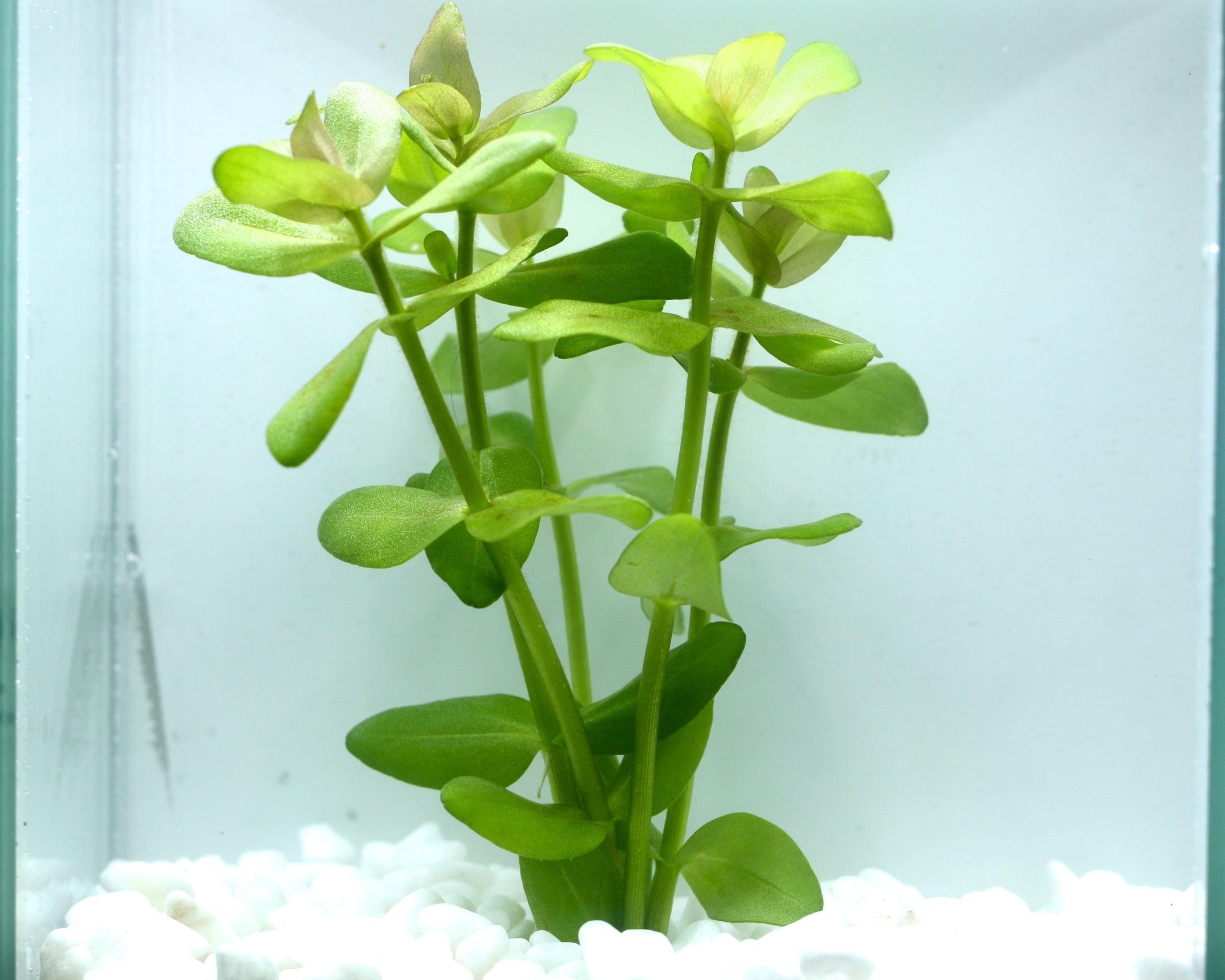 ウォーターバコパ(Bacopa caroliniana)は、丸みのある厚い葉と鮮やかなグリーンが特徴の、初心者にも非常に扱いやすい多年草の水草です。水槽内のアクアリウムから屋外のビオトープまで幅広く活躍してくれます。